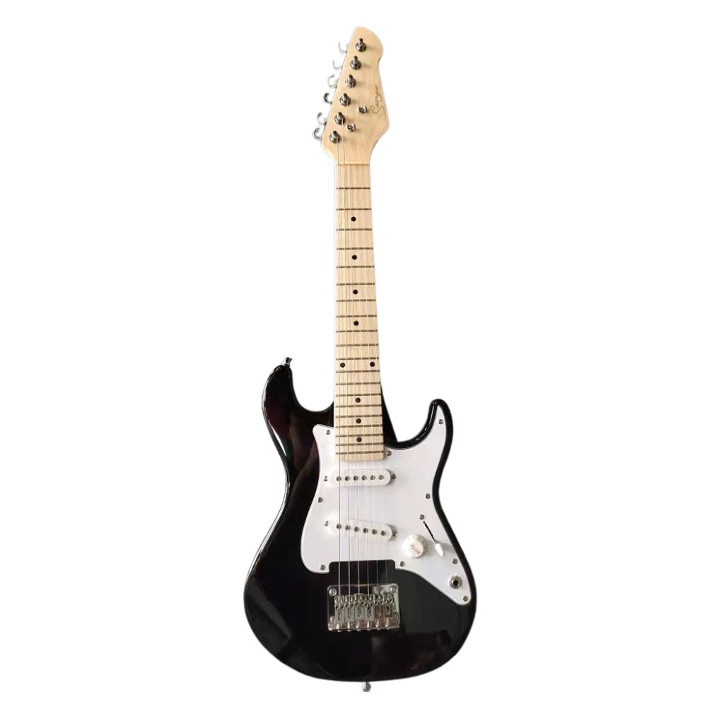 הגיטרה החשמלית MORATTI S-ST 3/4 BLACK מעוצבת בסגנון קלאסי, בגימור שחור מבריק עם פיקגארד לבן. היא בנויה במידות קומפקטיות (3/4) המתאימות במיוחד לנגנים צעירים או כגיטרה ניידת ונוחה לתרגול.