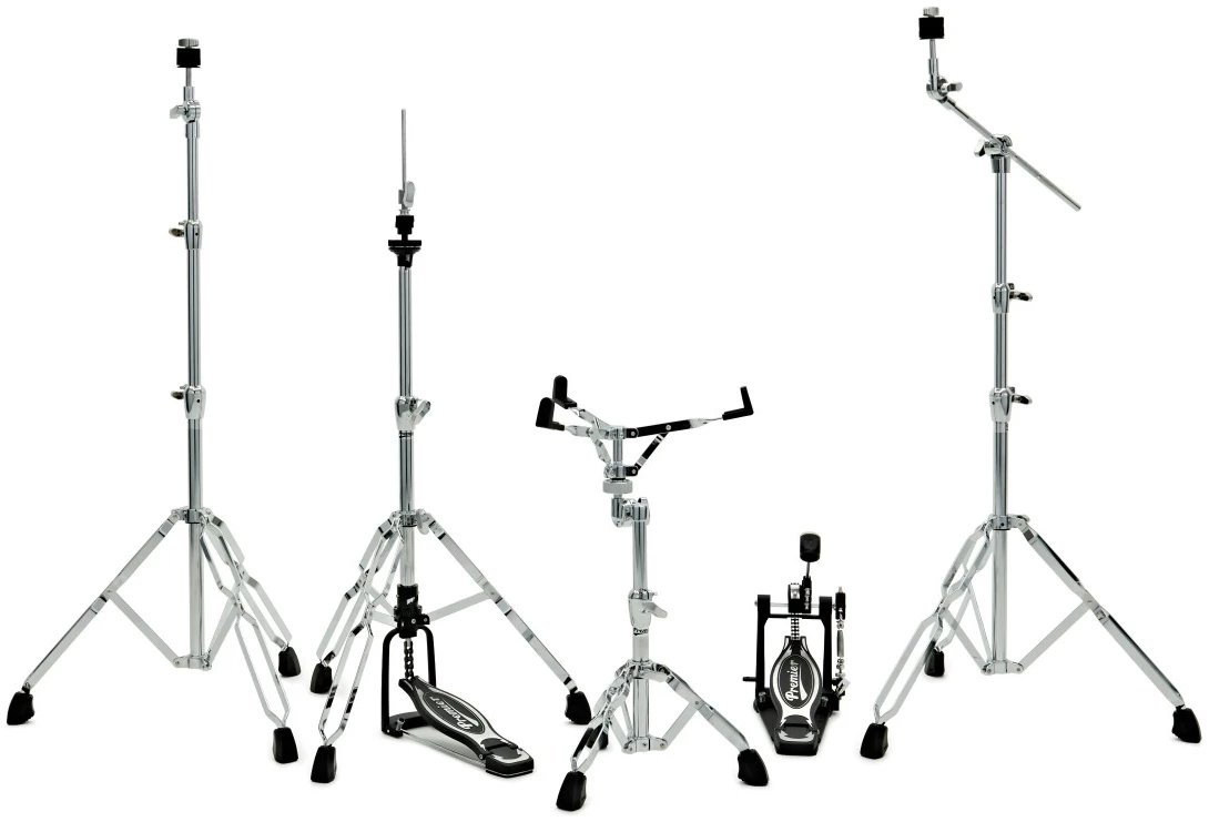 חבילת האבזור Premier PAHW-PACK1 Artist Pack מספקת פתרון מלא להקמת מערכת תופים יציבה ומקצועית. החבילה כוללת את כל המרכיבים הדרושים לנגינה – פדל בייס דראם, סטנד מצילה, סטנד בום, סטנד סנר וסטנד היי־האט – כולם בנויים ברמת גימור גבוהה עם רגליים כפולות (Double Braced) לעמידות וליציבות מרבית. כל אחד מהסטנדים מצויד במנגנון נעילה (Memory Lock) לשמירה על מיקום וזווית קבועים, ומאפשר התאמה מדויקת לגובה ולנוחות הנגן. בסיסי הגומי בעלי לוגו Premier מבטיחים אחיזה מושלמת גם בנגינה אינטנסיבית.