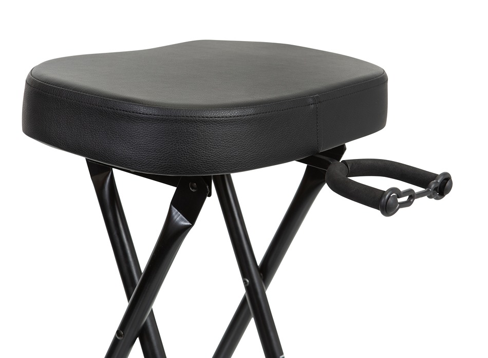 כיסא לגיטריסט עם סטנד לגיטרה Gator GFW-GTRSTOOL משלב מושב נוח עם סטנד מובנה לגיטרה – פתרון מושלם לנגנים בהופעה, באולפן או בבית. המושב כולל ריפוד עבה במיוחד בעובי 6.4 ס”מ, משענת רגליים לנוחות מרבית וסטנד אחורי מתקפל המתאים לגיטרות אקוסטיות, חשמליות ובסים. בסיס הכיסא מצויד ברגליות גומי עם פס בטיחות אדום לנראות בתנאי תאורה נמוכה, ומתקפל בקלות לנשיאה ואחסון.
