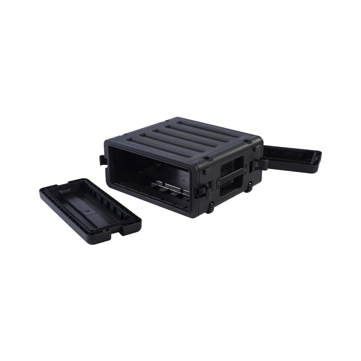 מארז Rack 19 אינץ בגובה 4U עשוי פלסטיק קשיח, מיועד לאחסון והתקנה של ציוד Rack סטנדרטי. כולל רוחב פנימי 19 אינץ וגובה פנימי 7.36 אינץ, עם מסילות בעומק מתכוונן להתאמה נוחה לציוד שונה. מבנה קשיח עם מכסים קדמיים ואחוריים נשלפים, מתאים לשינוע ולהגנה על ציוד בתנאי עבודה מגוונים.