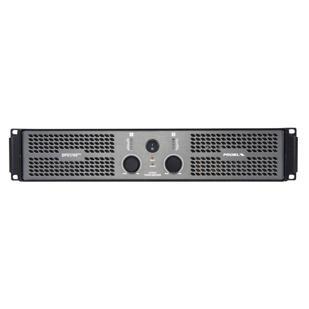 מגבר הספק Proel DPX1700PFC בהספק 2×850W ב-4 אוהם (או 1700W בגשר 8 אוהם), מספק עוצמה גבוהה במיוחד במבנה קל וקומפקטי. המגבר מבוסס על טכנולוגיית Class D עם ספק כוח SMPS מתקדם הכולל Power Factor Correction (PFC). כולל קרוסאובר סטריאו מובנה 24dB/oct עם מצבי BI-AMP ו-High-Pass, לימיטרים מהירים למניעת דיסטורשן, ומערכת הגנות חכמה השומרת על המגבר והרמקולים. מארז האלומיניום הקליל שלו מספק קירור יעיל, עמידות ותחושת איכות מקצועית.
