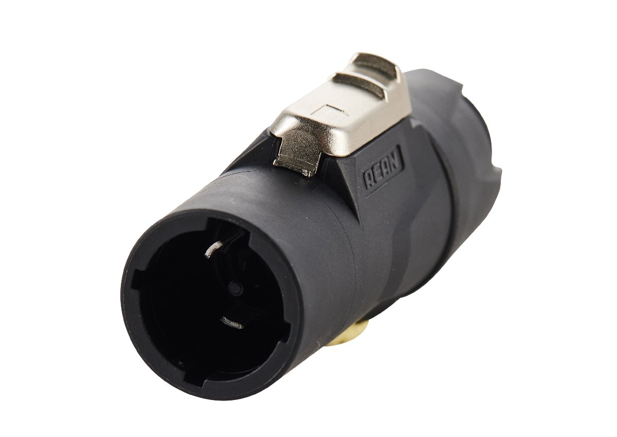 מחבר PowerCON True1 לכבל ליציאת מתח מיועד להעברת חשמל בצורה בטוחה ואמינה במערכות תאורה, סאונד והפקות במה. כולל מנגנון נעילה חזק למניעת ניתוק בלתי רצוי ועמידות גבוהה בתנאי סביבה קשים, עם הגנה מפני מים ואבק.