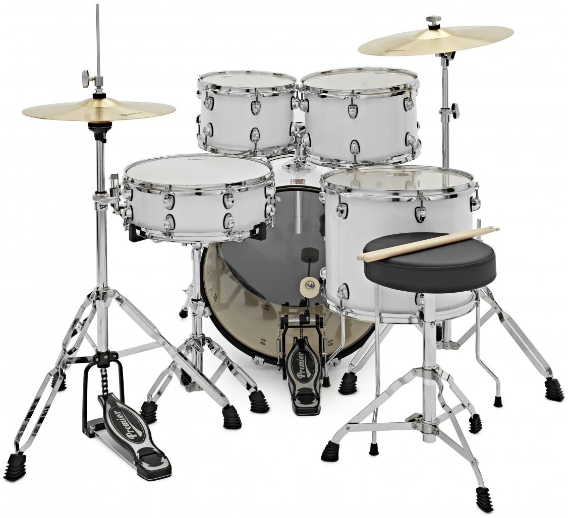מערכת תופים 5 חלקים 22 כולל אביזרים כיסא ומצילות Premier PR22-5DKWHW Revolution