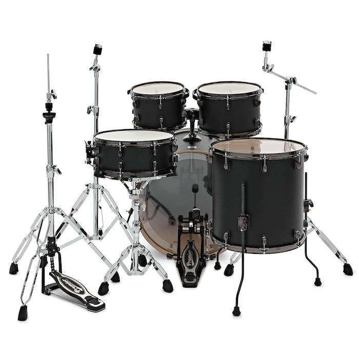 התופים עשויים 100% עץ בירץ’ (ליבנה) בעובי 7.5 מ”מ עם 6 שכבות, ומצוידים במערכת תלייה ISO Suspension לשמירה על תהודה טבעית ומיקום מדויק. החישוקים מסוג Triple-Flanged בעובי 1.5 מ”מ תורמים לעמידות ולצליל נקי, בעוד שהגימור האלגנטי Matte Black מעניק למערכת מראה מקצועי ומודרני המתאים לכל במה ואולפן.