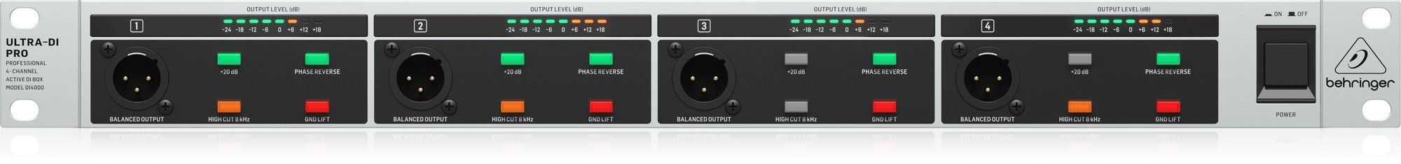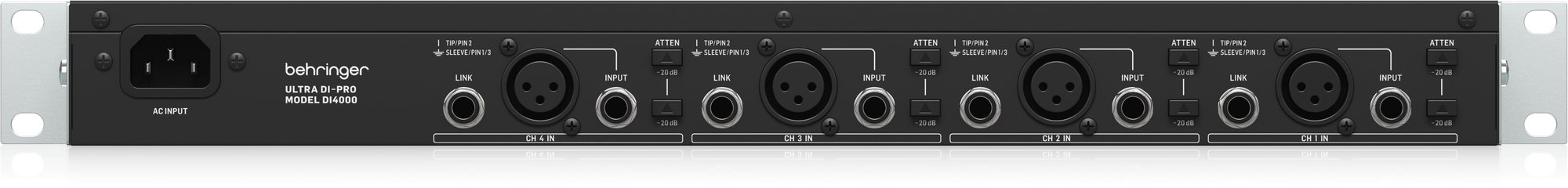 - 4 ערוצי DI אקטיביים במארז 19 אינץ’ עם אוזני Rack Mount